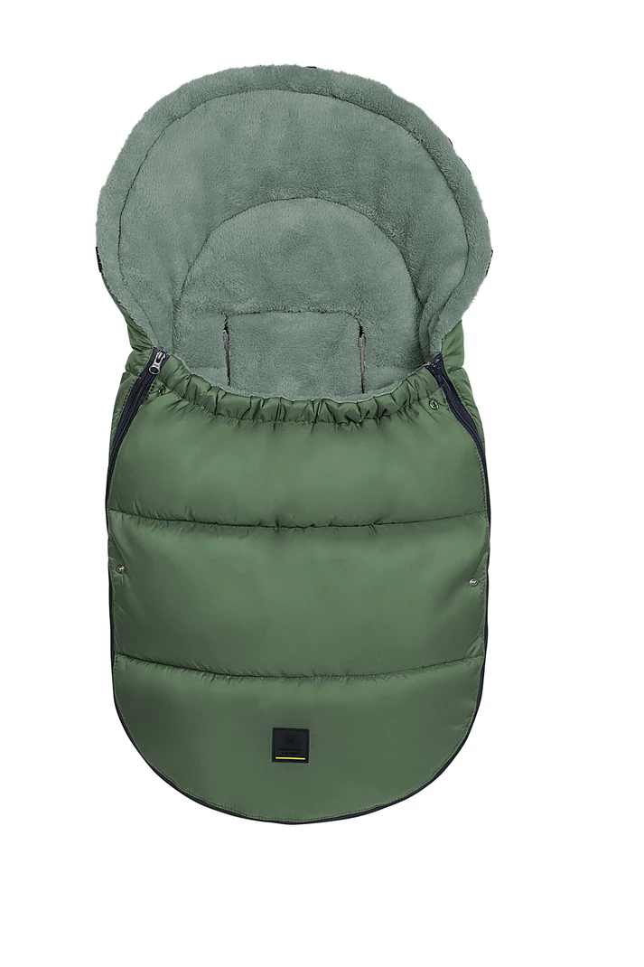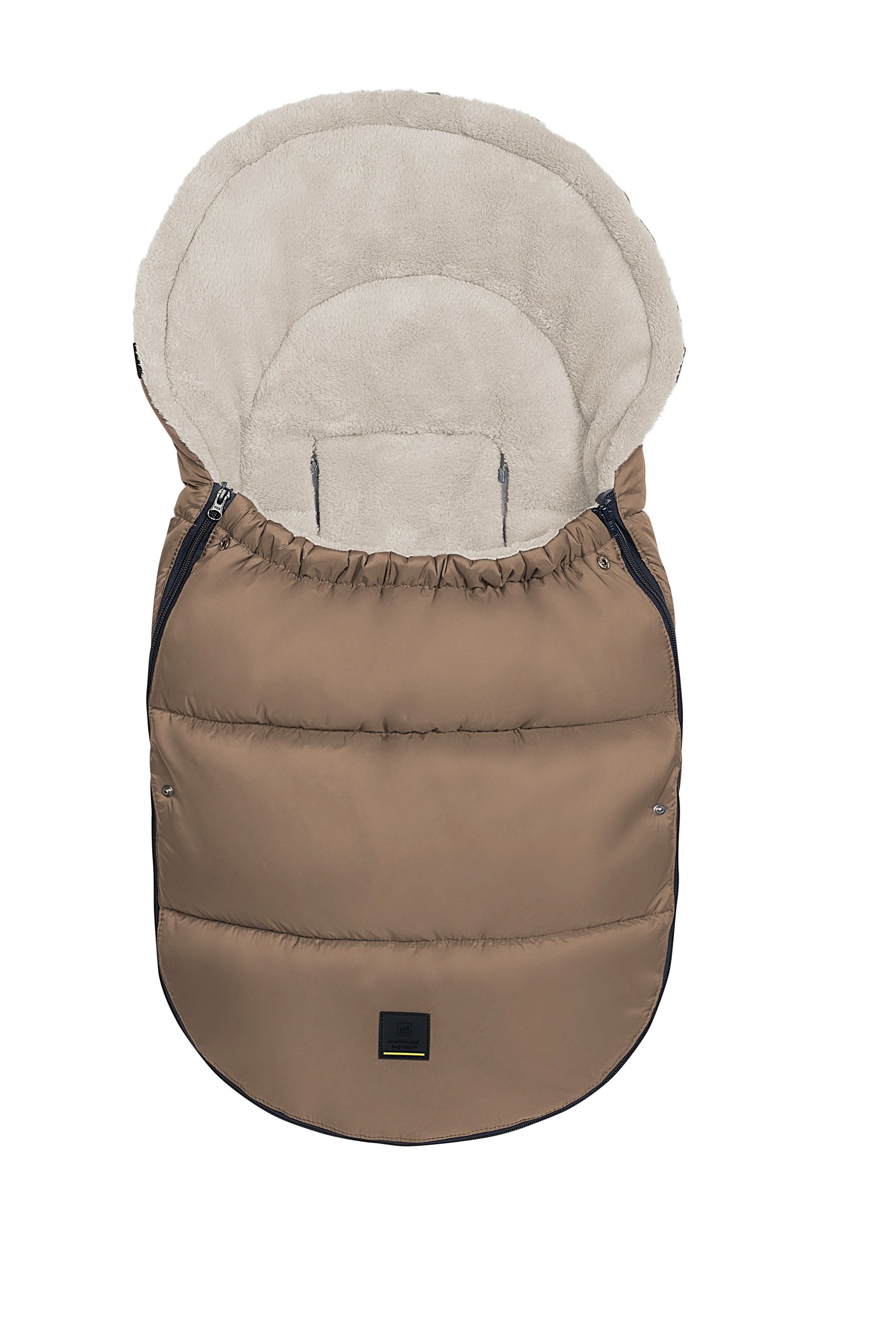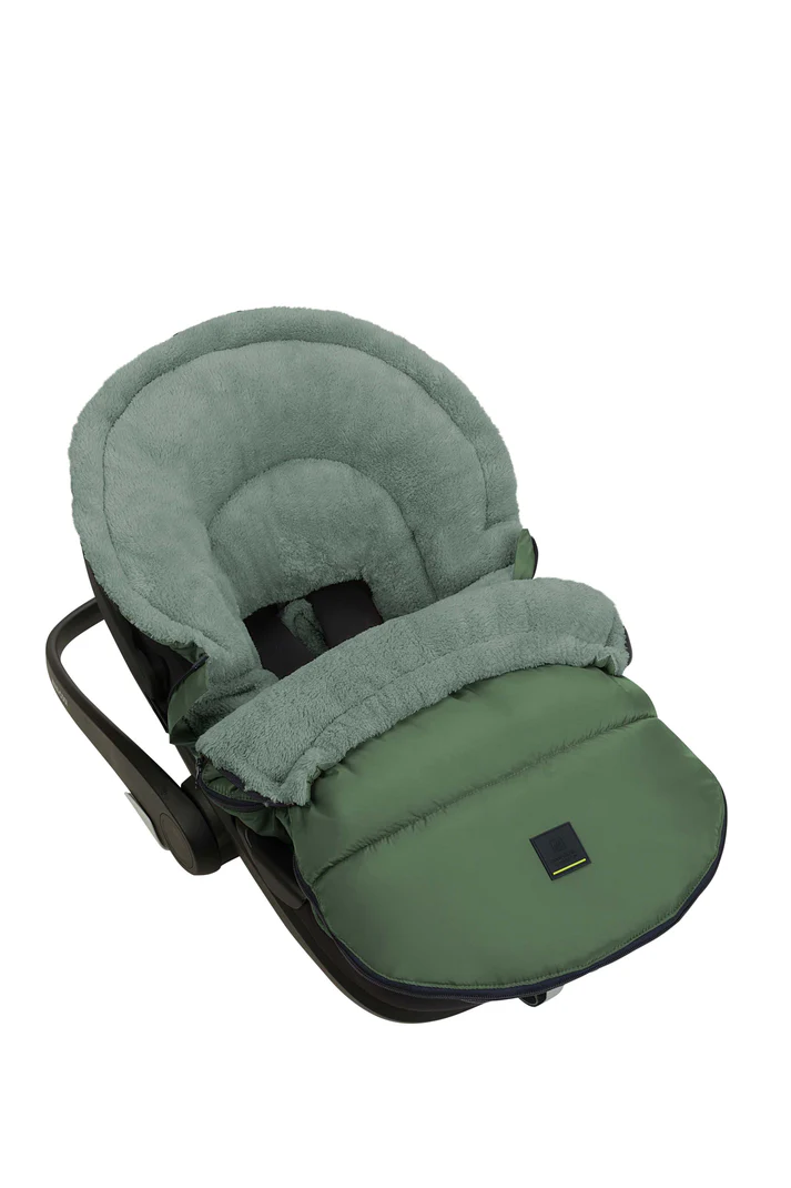 Dotato di asole universali per le cinture di sicurezza, è compatibile con la maggior parte degli ovetti e seggiolini auto. La cerniera centrale consente di aprire completamente il sacco per facilitare il posizionamento del bambino o per utilizzarlo come copertina in ambienti interni.
