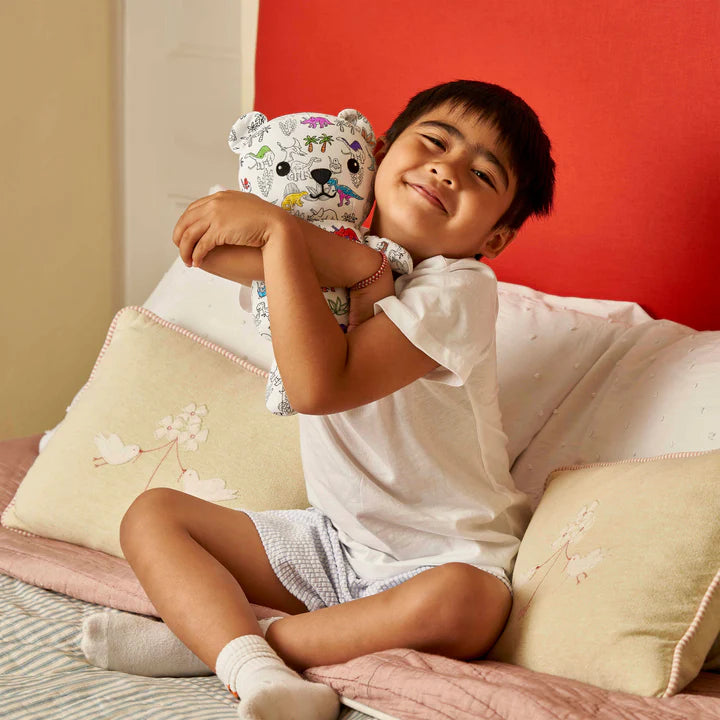 Una volta terminata l'opera d'arte o quando si desidera cambiare stile, è sufficiente un lavaggio in lavatrice: l'inchiostro scompare completamente, lasciando l'orso pulito e pronto per una nuova creazione. Un'attività screen-free (senza schermi) che unisce il comfort di un morbido peluche al divertimento di un kit artistico.