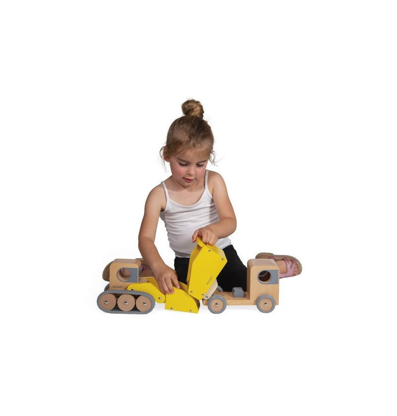 Un autocarro con cassone ribaltabile ed escavatore di Janod.