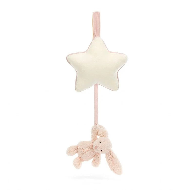 Lascia che questa coniglietta timida assista al momento del sonnellino con questo dolce carillon da tirare. Appesa delicatamente a una morbida stellina color crema, è pronta a cullare i piccoli con una dolce ninna nanna Jellycat. Fissala a culla, lettino o box con la pratica chiusura a strappo, tira delicatamente la coniglietta e lascia che il suo fascino senza tempo porti conforto ovunque il bambino riposi. Un classico compagno con un tocco musicale, pensato per coccole, calma e momenti tranquilli.