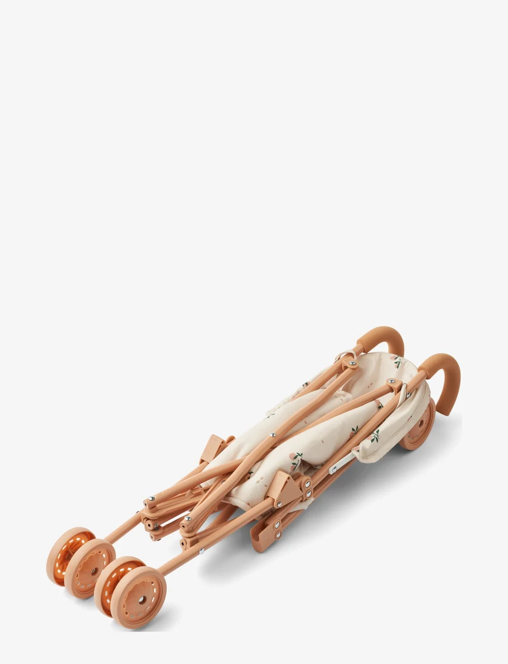 La struttura in acciaio verniciato a polvere è solida e leggera. Le quattro doppie ruote garantiscono stabilità e facilità di manovra anche dai più piccoli. Inoltre, il passeggino si piega facilmente per essere portato ovunque – perfetto per le visite a casa di amici o in famiglia.