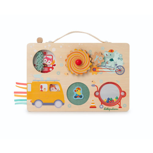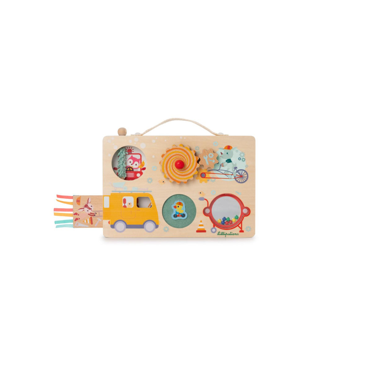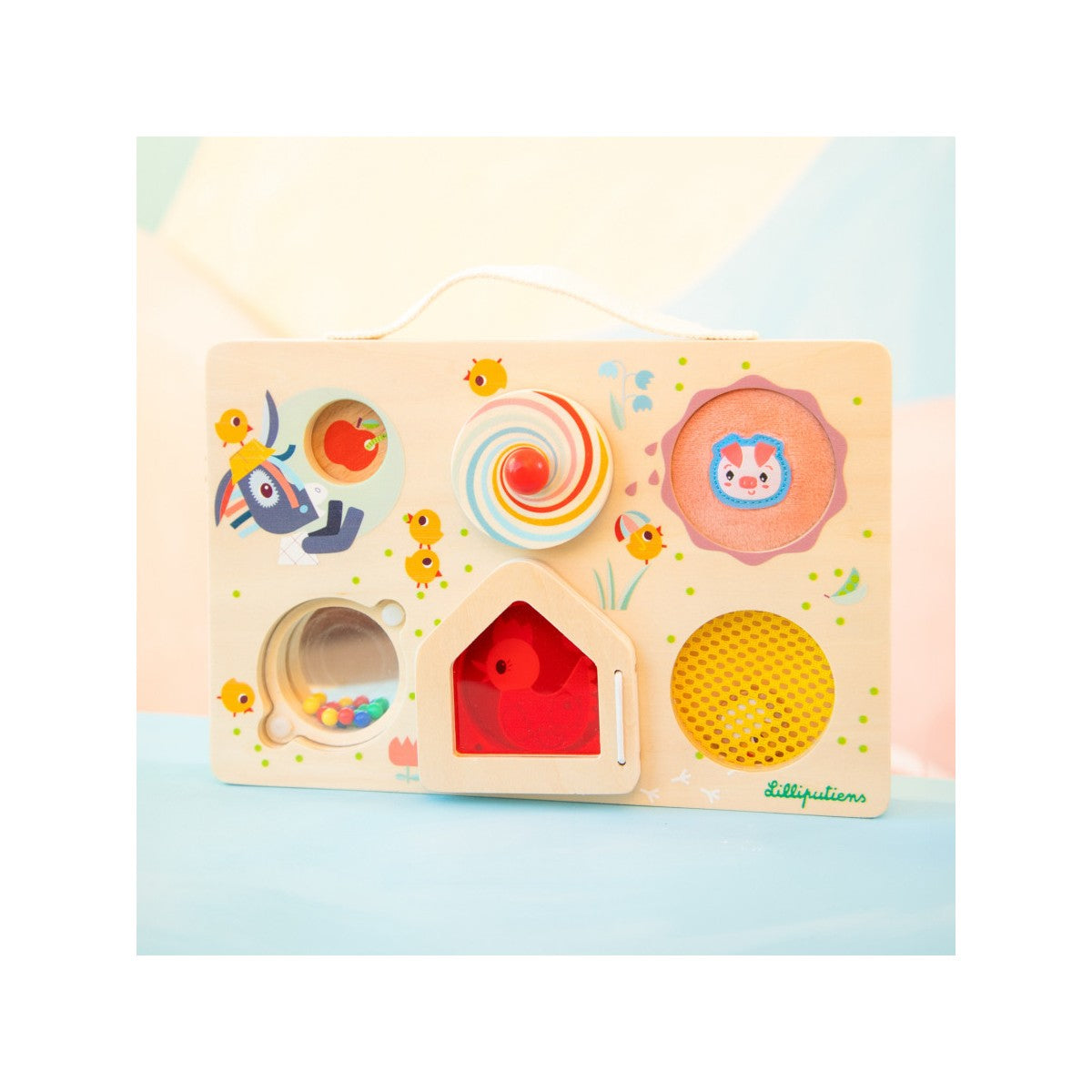 Scopri questa allegra valigetta piena di sorprese e attività che stimolano i sensi del bambino.
