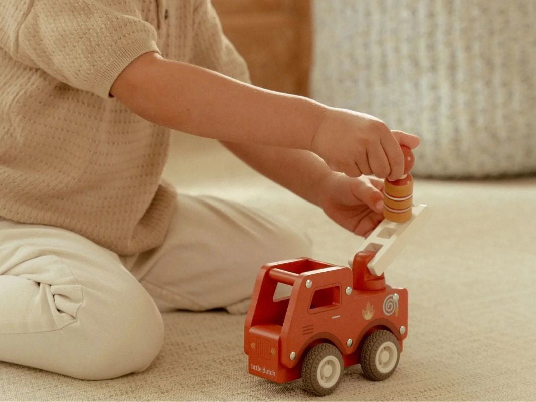 - Contenuto: Camion dei pompieri in legno, personaggio pompiere