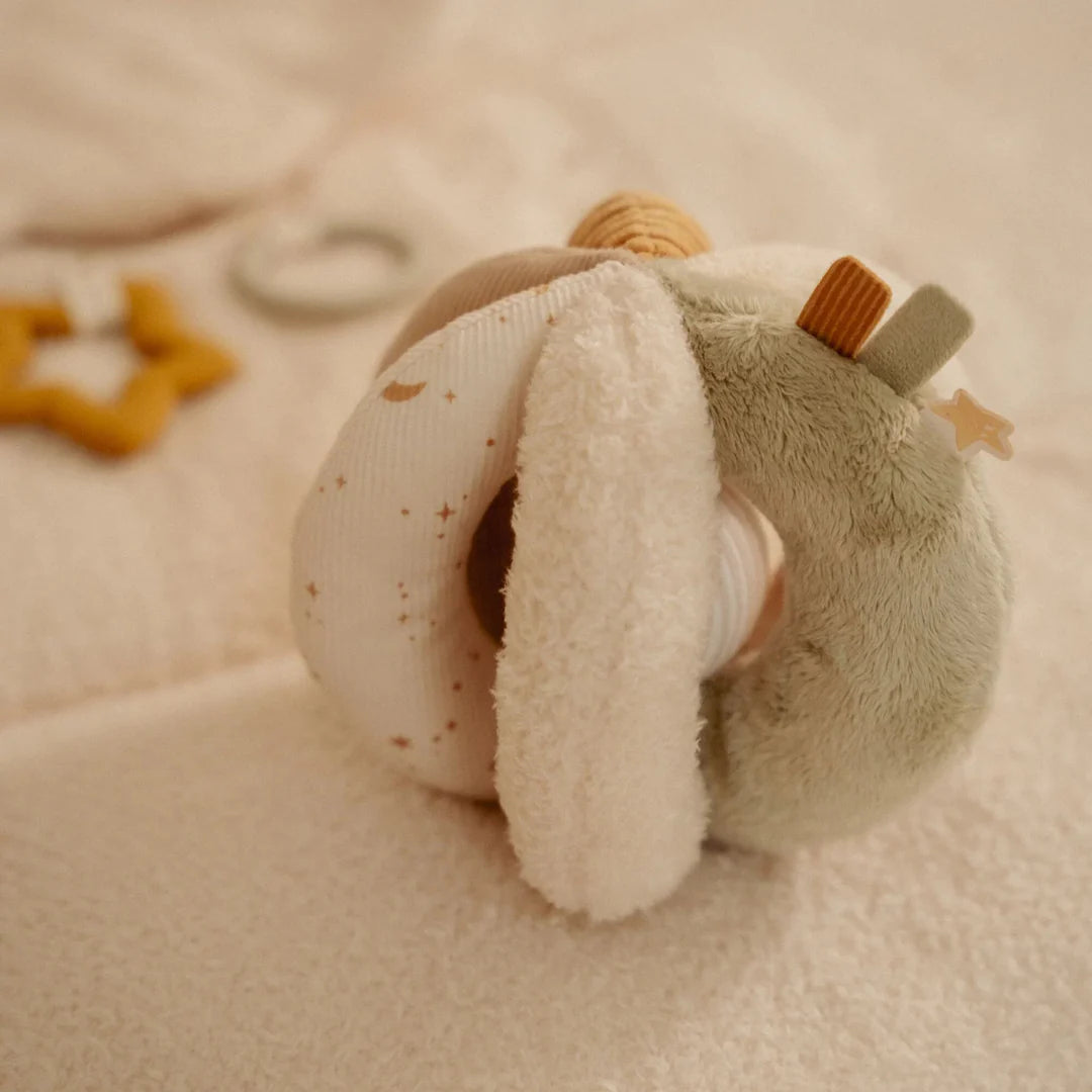 - Stimola Tutti i Sensi: Il tessuto soffice, le etichette da scoprire e i colori delicati della collezione sono studiati per stimolare la vista e il tatto del tuo bambino, offrendo un'esperienza sensoriale ricca e gentile.