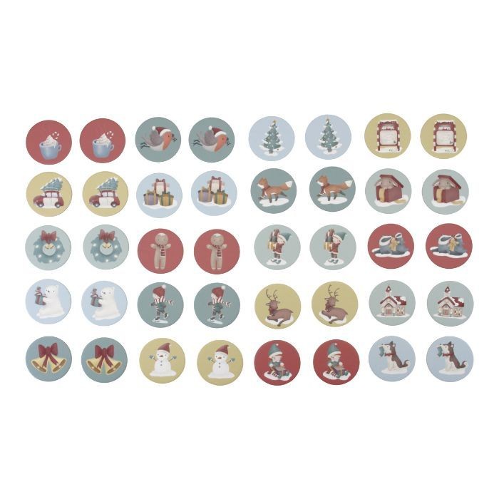 Riesci a ricordare la posizione della carta corrispondente sul tavolo? Questo Gioco di Memoria Natalizio sfida i giocatori a trovare le coppie. Le carte sono rotonde e presentano illustrazioni a tema, che vanno dai pupazzi di neve alle renne.
