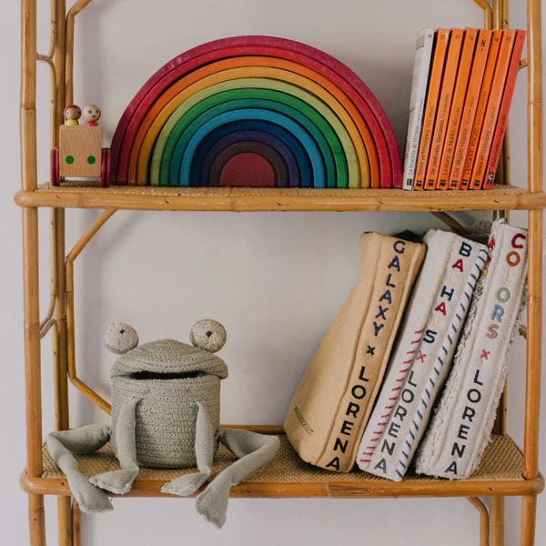 Una versione mini e allegra del popolare cesto a forma di rana. Porta un design affascinante e giocoso nella cameretta, perfetto per riporre piccoli tesori su scaffali o comò.