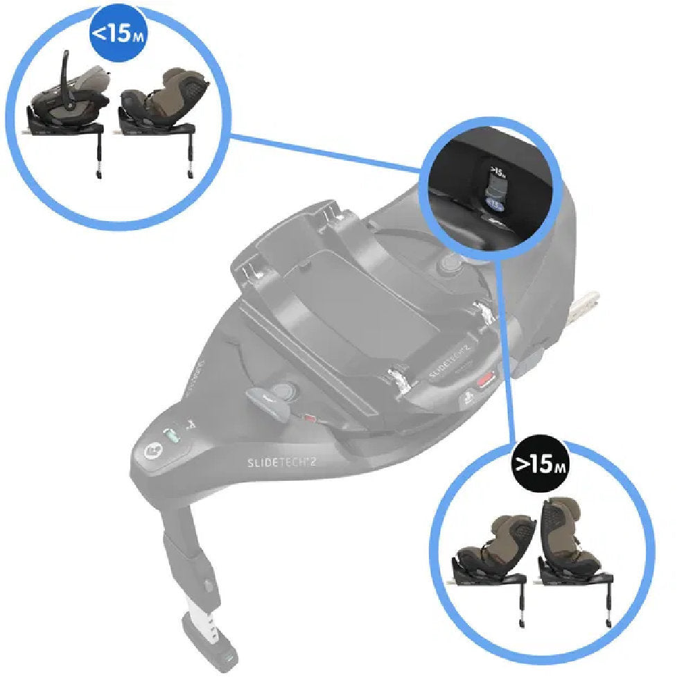 Dì addio al mal di schiena e alle contorsioni in auto. La Base FamilyFix Slide Pro rivoluziona il modo di viaggiare con i bambini grazie all'innovativa tecnologia SlideTech™: l'unica base che non solo ruota, ma scorre fuori dall'auto.
