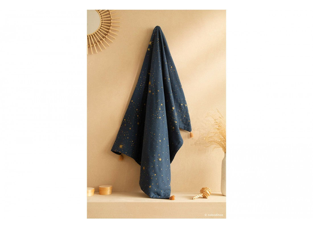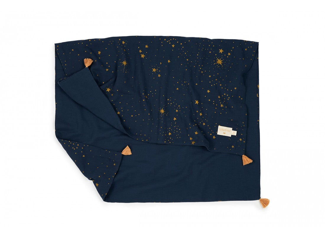 La copertina estiva Treasure in mussola doppia di cotone biologico avvolge il tuo bambino con morbidezza e leggerezza, ideale per i pisolini estivi o le passeggiate pomeridiane. I delicati pompon decorativi e le tonalità raffinate aggiungono un tocco elegante alla cameretta.