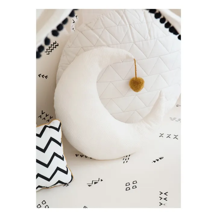 Cuscino decorativo a forma di luna, realizzato in morbido velluto riciclato, perfetto per aggiungere un tocco poetico e accogliente alla cameretta dei bambini.