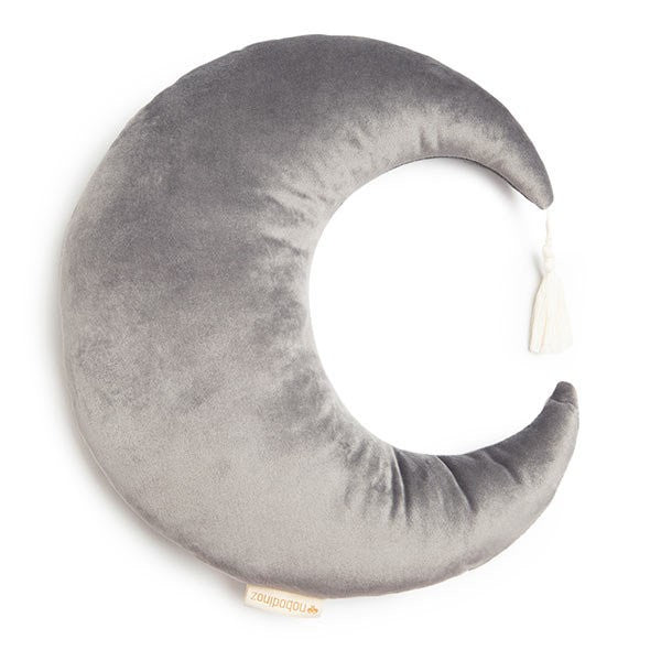 Cuscino decorativo a forma di luna, realizzato in morbido velluto riciclato, perfetto per aggiungere un tocco poetico e accogliente alla cameretta dei bambini.