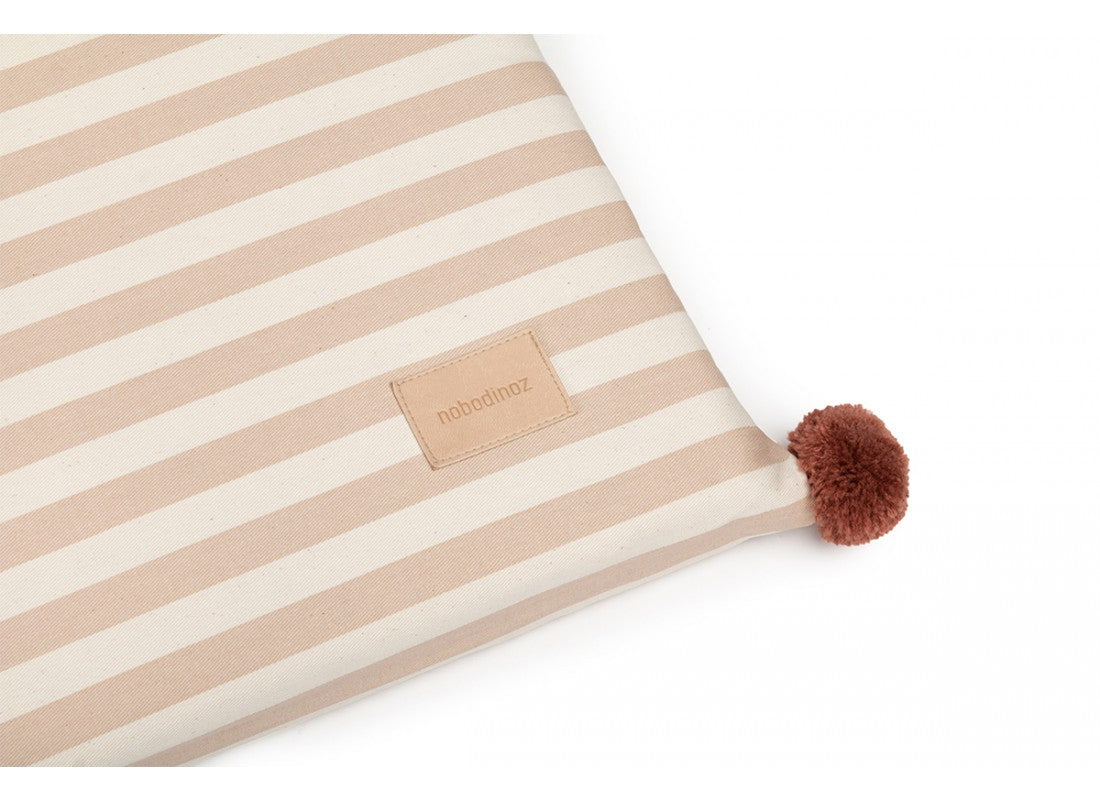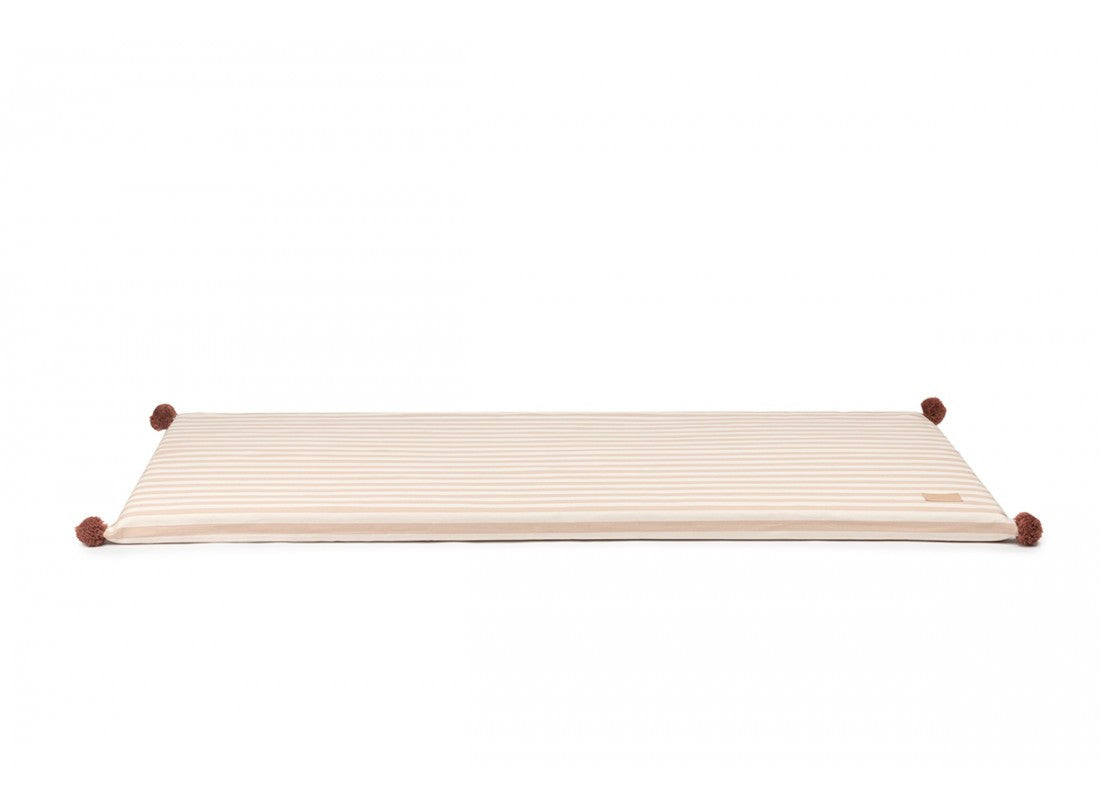 Questo tappeto da gioco con righe e pompon aggiunge stile e allegria alla cameretta. Morbido e confortevole, è ideale per creare un angolo gioco o lettura accogliente e divertente.