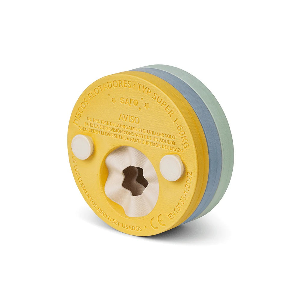Ogni bracciolo è composto da 3 dischi rimovibili. Puoi regolare il livello di galleggiamento rimuovendo o aggiungendo un disco per seguire i progressi del bambino, mantenendo sempre l’equilibrio tra le braccia.
