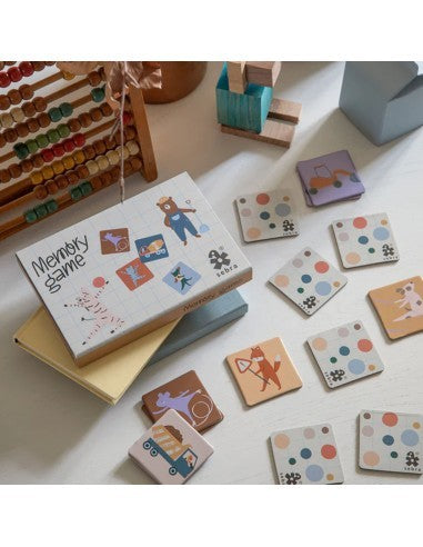Questo gioco memory in scatola di legno è pensato per stimolare in modo divertente la memoria e la concentrazione dei bambini. Composto da 30 tessere colorate in legno certificato FSC, le carte sono comode da afferrare e aiutano i più piccoli a ricordare meglio i motivi e a distinguerli tra loro.