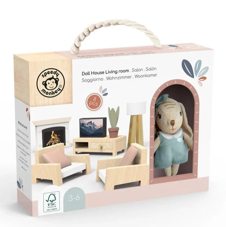 Set Arredamento Soggiorno in Legno per Casa delle Bambole