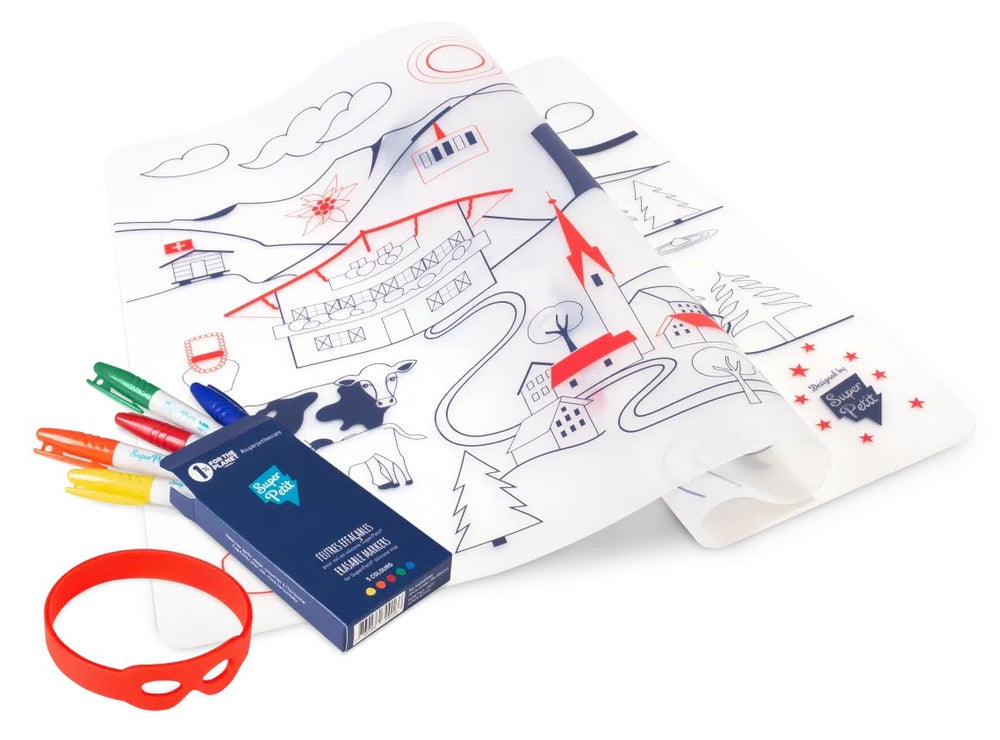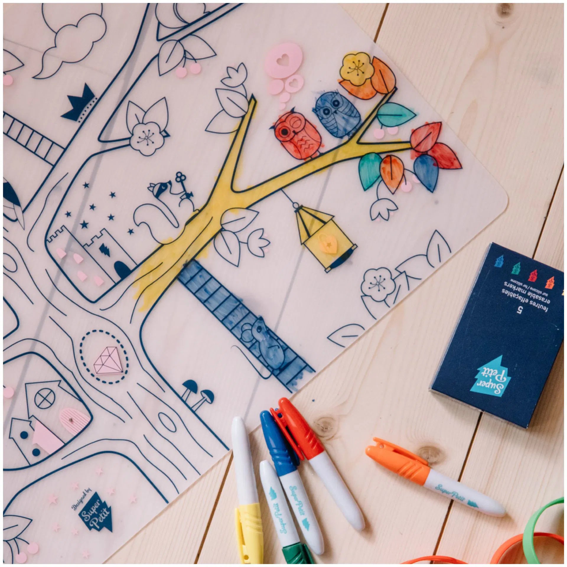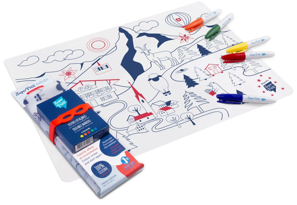 Tovaglietta in silicone da colorare con 5 pennarelli - 40x30cm