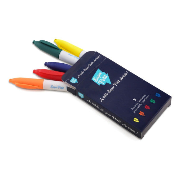 Il prodotto è composto al 100% da silicone alimentare, con una superficie antibatterica non porosa, completamente sicura e ideale per i più piccoli. Il set include 5 pennarelli in silicone facili da pulire e una cinghia.