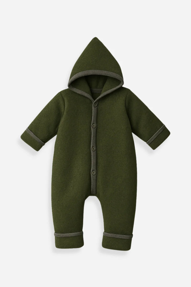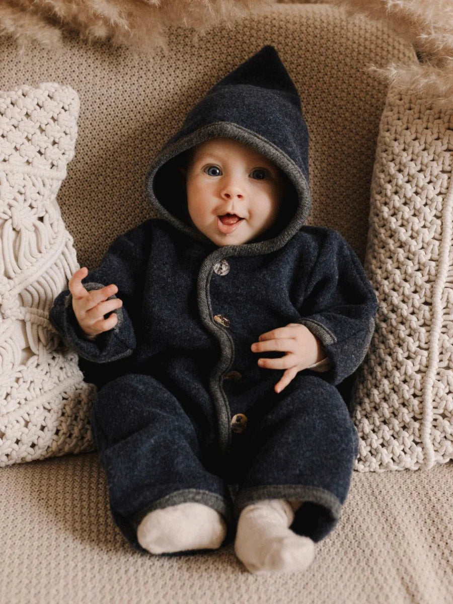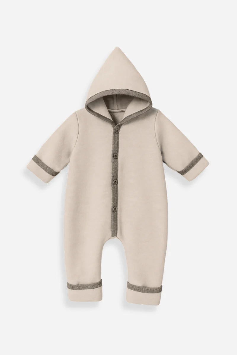 Tuta neonato in lana cotta con cappuccio e apertura con bottoni